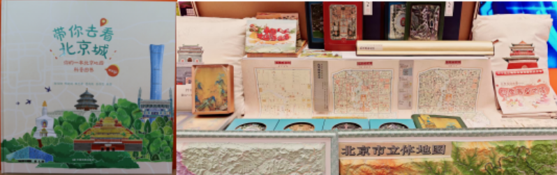 通过文创地图宣传历史文化,如开发北京中轴线系列、图观北京系列、老北京系列、城址变迁系列等地图文创产品。