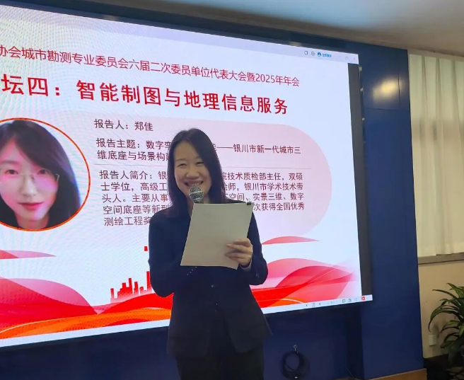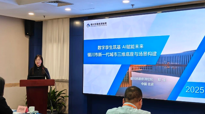 银川市勘察测绘院技术质检部主任、高级工程师郑佳做了《数字孪生・AI 赋能 —— 银川市新一代城市三维底座与场景构建》的报告。作为银川市学术技术带头人,郑佳结合自身多年新型基础测绘工作经验,详细介绍了融合倾斜摄影、激光扫描、InSAR 监测等多源技术的数字孪生模型构建方案。报告聚焦 L1 至 L4 级全精度数字孪生模型体系建设,分享了在技术创新、全域覆盖及典型业务场景应用等方面的实践成效,为中西部城市以数字孪生赋能新型基础测绘提供了可借鉴的实践样板。